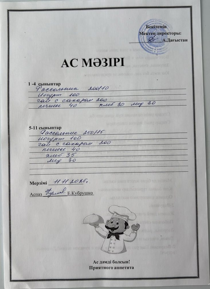 Күнделікті ас мәзірі 11.11.2025