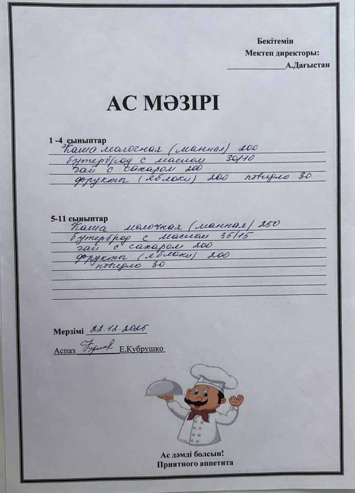 Күнделікті ас мәзірі 22.12.2025