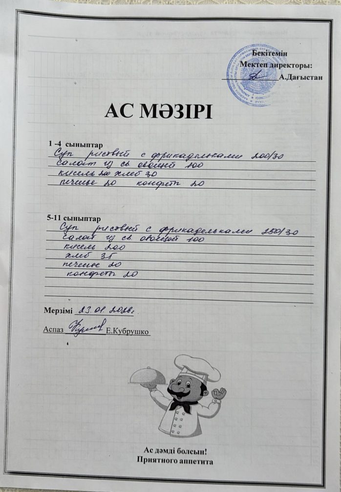 Күнделікті ас мәзірі 23.01.2026