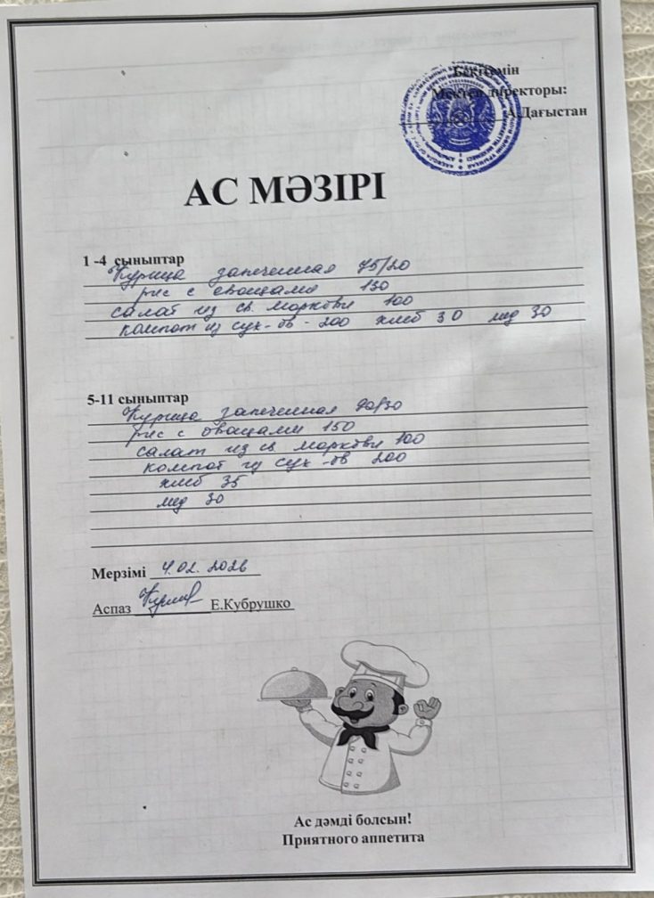 Күнделікті ас мәзірі 4.02.2026