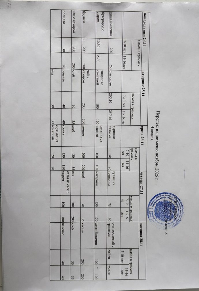 қарашаға арналған перспективалық мәзір