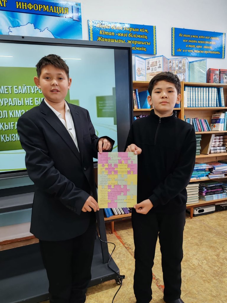 Кітапханада оқушыларымен букпазл ойыны өтті .