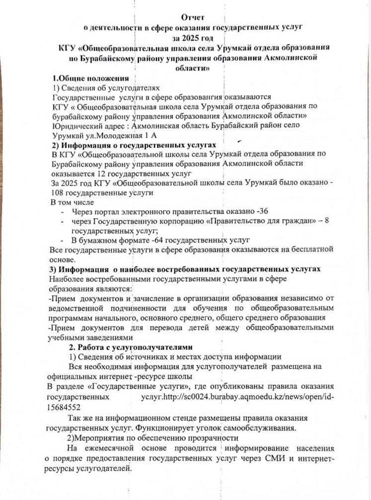 Көпшілік алдында талқылау үшін 2025 жылға мемлекеттік кызметтерді көрсету саласында туралы есебі